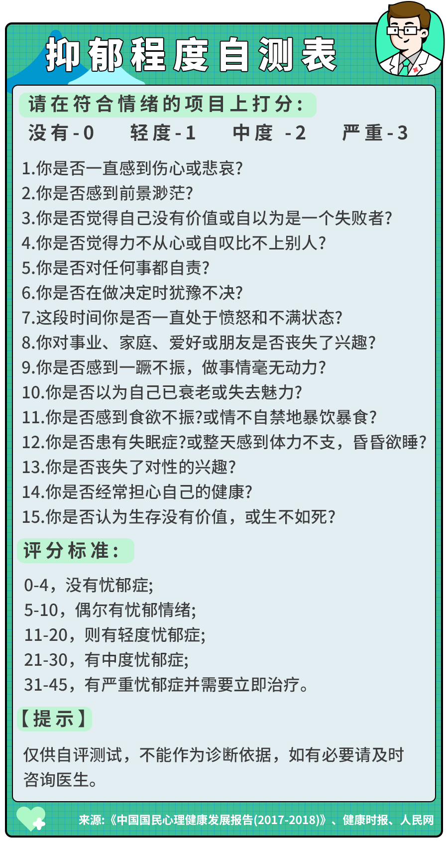 有数据显示,全球每年有近100万人自杀,其中近一半是抑郁症。