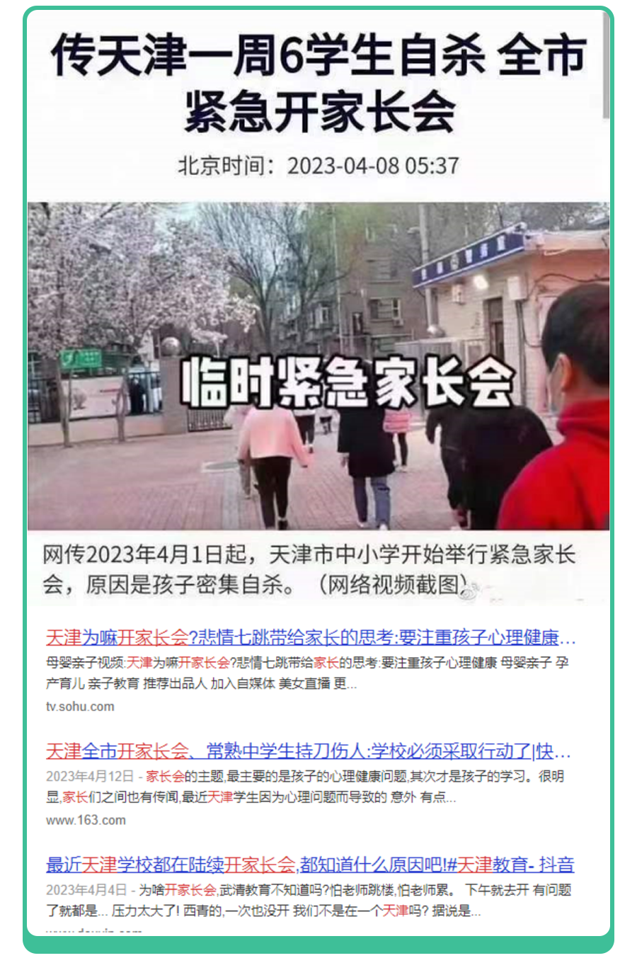 四月初,天津一周6学生自杀,全市紧急开家长会的消息,传遍朋友圈!
