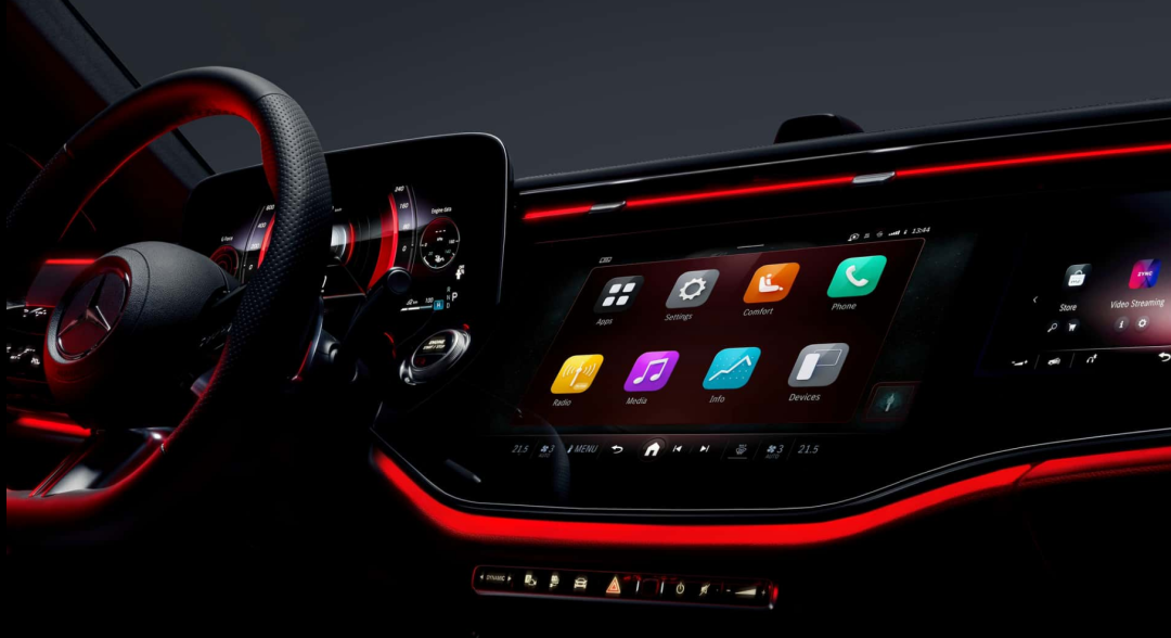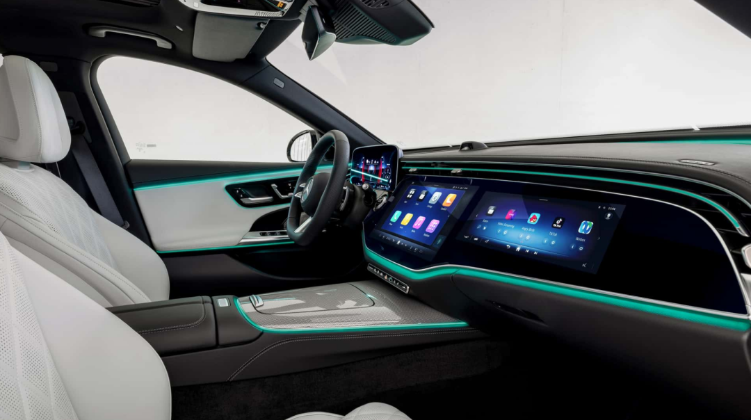 内饰方面,综合官图来看,全新奔驰E级长轴版的设计风格借鉴奔驰EQS,搭配全新“MBUX超级屏”融合环抱式座舱,采用超大尺寸三联屏搭载MBUX Superscreen系统,其中控台表面由整体触控面板构成。经典的奔驰涡轮式空调出风口改换成横向通风口,快捷物理按键则从中央扶手位置更换到主屏幕下方,使得车辆的中控台看起来更加简约大方。