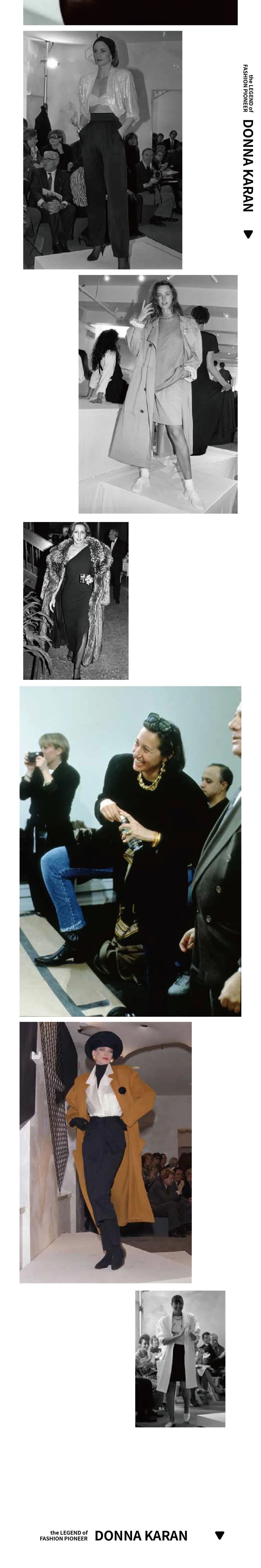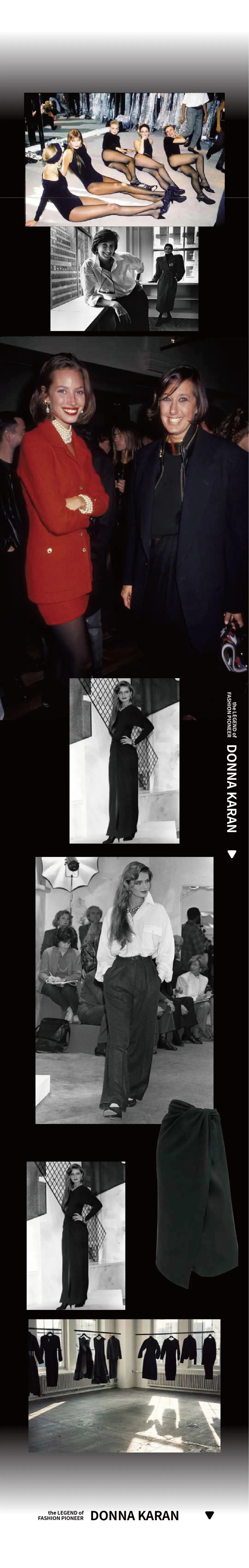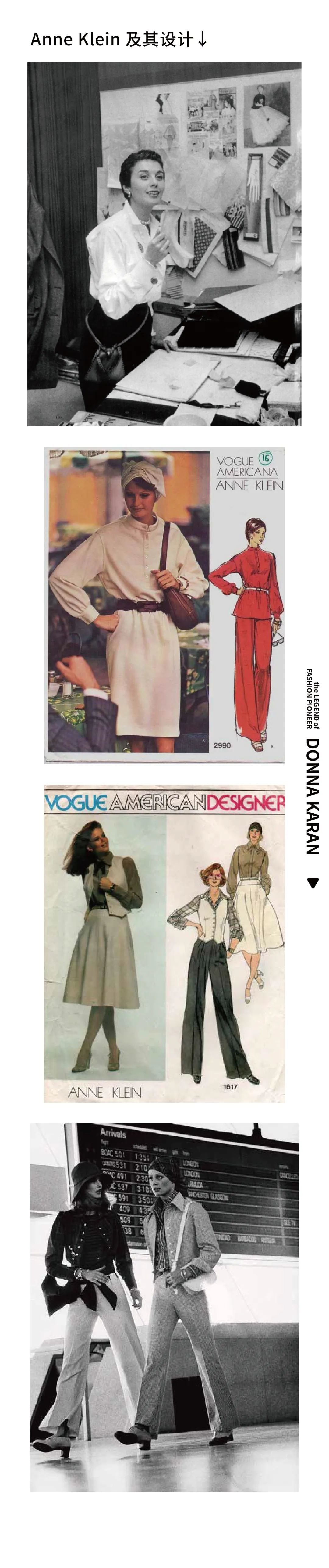 Donna Karan 生于 1948 年的纽约皇后区,她的母亲 Helen Faske 是一位时装模特,父亲 Gabriel Faske 则是名裁缝,因此她的时尚启蒙可能从降生的那一刻起便开始了。Karan 的时尚生涯没有经历太多波折,她在高中毕业后就进入了帕森斯设计学院,大学在读期间就被著名设计师 Anna Klein 聘为设计助理,并在 1971 年正式加入 Klein 的设计团队。Anna Klein 是当时行业内备受尊敬的女性设计师之一, 在性别平等意识淡薄的年代,Klein 就以最朴实的方式践行着女性主义,利用相对宽松的剪裁、简约大方的廓形和优质舒适的面料打造实用且得体的女装。随着越来越多的美国女性选 择步入职场,兼备多重属性的 Klein 女装毫不意外地成为了成衣市场的宠儿,设计师也在 60 年代后期成为美国家喻户晓的时尚名人。而对于年轻的 Donna Karan 来说,Klein 扮演着雇主和导师的双重角色,在后者的启发下,她对女装的审视同样跳脱出了男性凝视的框架,将焦点落在更具现实意义的东西上——实用性。