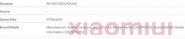 据海外媒体消息, 型号为23078PND5G的小米13T Pro(国行对应Redmi K60 Ultra或者说K60至尊纪念版)近日已经现身IMEI数据库,并获得EEC认证。