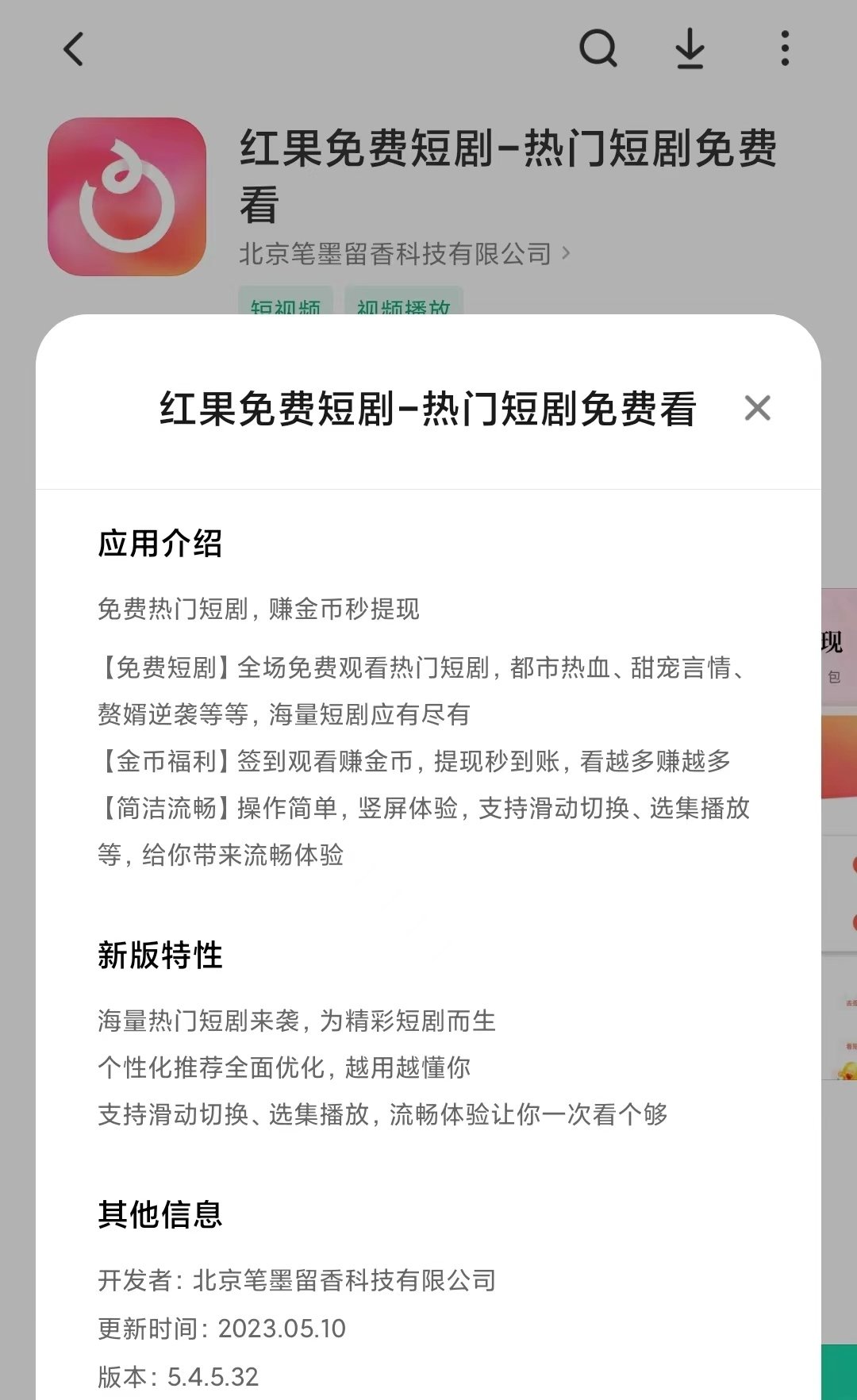 鞭牛士 5月12日消息,据Tech星球消息,抖音集团推出一款名为“红果免费短剧”的App,开发公司是北京笔墨留香科技有限公司,根据天眼查股东信息显示,该公司由北京抖音信息服务有限公司100%控股。