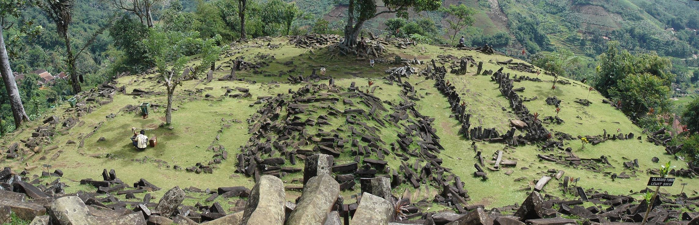 西爪哇展玉南部巴东山玄武岩棱柱围成的建筑基址