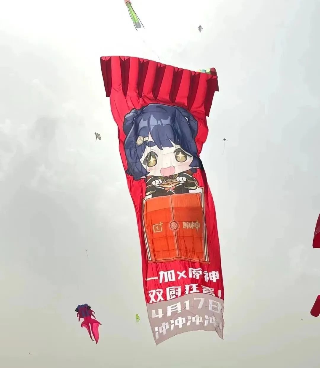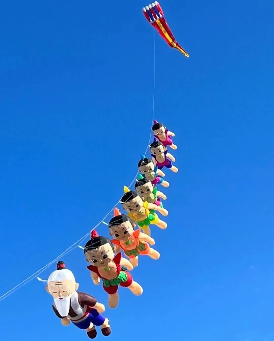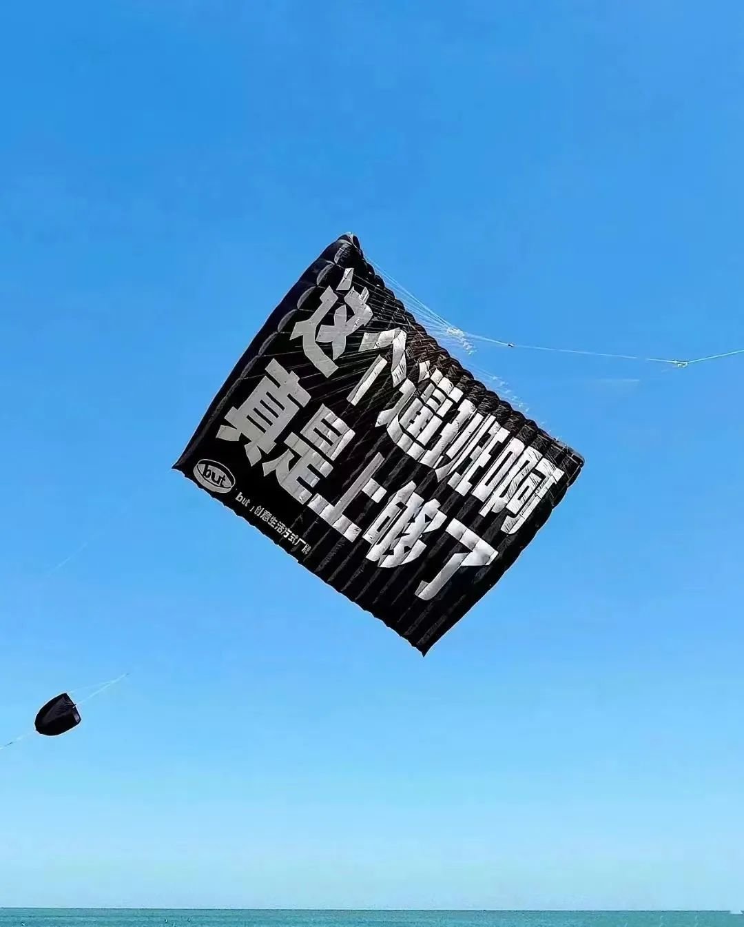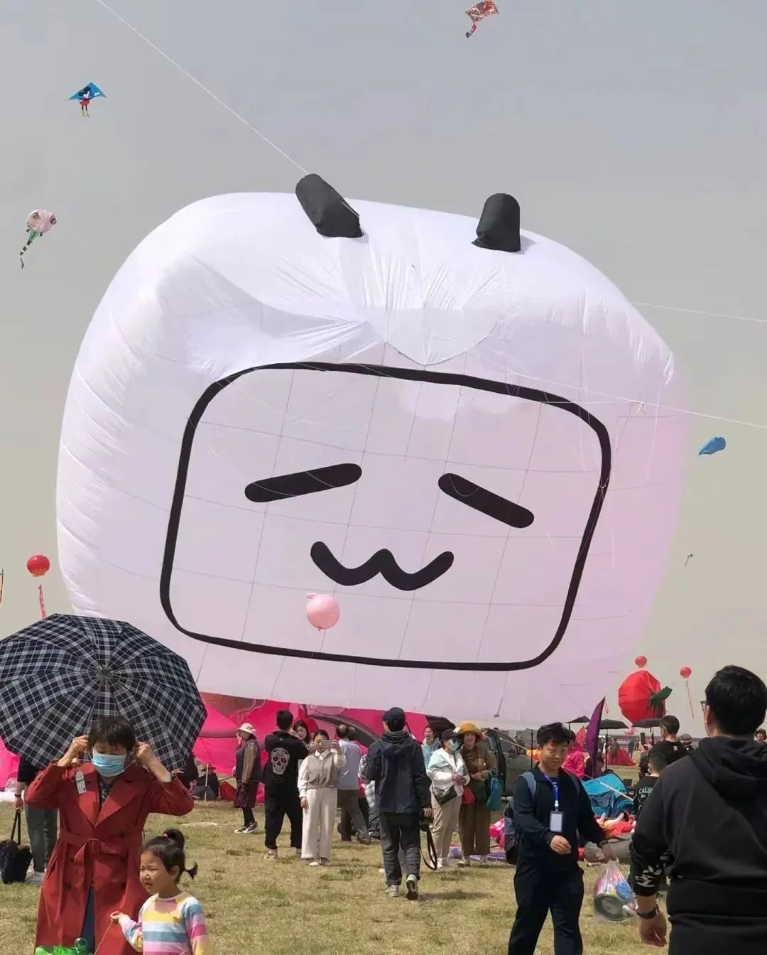 没有脸蛋衬托,这个风筝看着有些诡异。