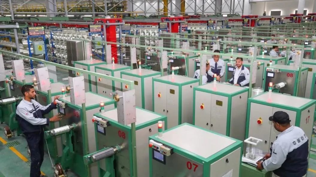 ▲ 中国巨石埃及公司的工人在玻璃纤维生产线上工作