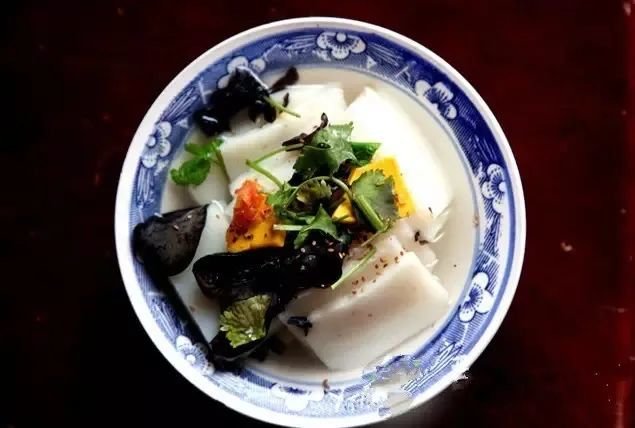 一碗晶莹剔透,汤味清香的木耳圪贝就做成了,口感又像椰肉又像布丁,蘸着醋吃,满口酸香,在炎热的夏天可是本地老饕们的心头好。