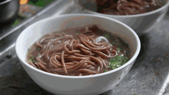 浇上提前调好的特色酱汁,一碗香气四溢的“清汤饸饹”就做好了,汤汁咸香,面条劲道有嚼劲,任谁吃上一碗都会上头。