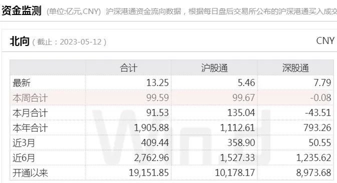 5月12日,北向资金尾盘回流,全天净买入13.26亿元,连续6日净买入,其中沪股通净买入5.47亿元,深股通净买入7.79亿元。