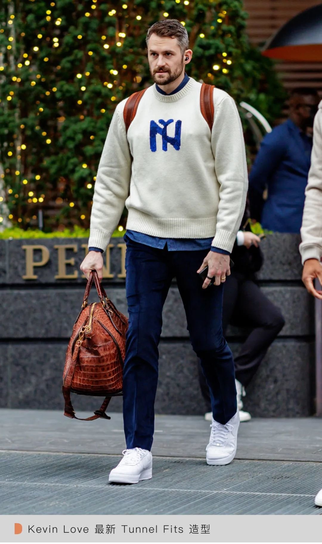 对于 Kevin Love 的造型 Courtney Mays 解释:“Love 这次带来的是经典美式风格,你能在他身上看到很多都来自 Ralph Lauren、Zegna、Kith 和 Aimé Leon Dore 等品牌的衣服,他也很钟爱这些品牌。”