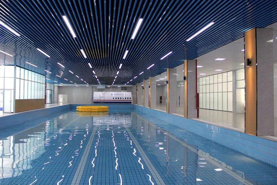整个模拟器舱体为B737半开放式舱段,包含前门区和客舱段,主要用于学生在飞机着水状态下进行紧急撤离的训练,掌握正确开启舱门后按照水上撤离程序引导旅客从救生筏撤离。舱门观察窗配备视景系统,可模拟窗外情景,同时在舱外配备有八角救生筏,在这里不仅能让学生掌握水上撤离技能,同时还能在这里进行游泳的技能训练与考取证书。