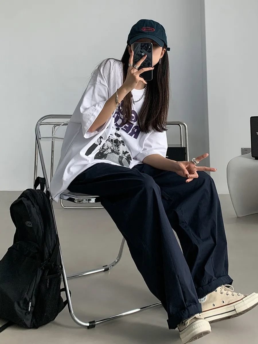 1.宽松T恤+阔腿裤