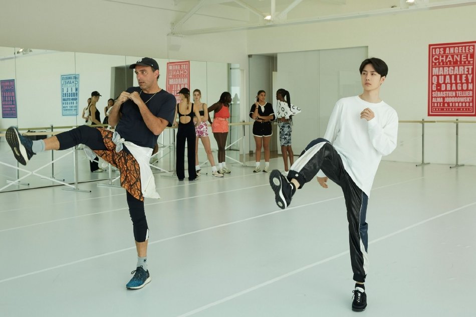 5月13日,王一博工作室分享一组舞蹈排练室随拍,王一博学习舞蹈动作认真练舞。