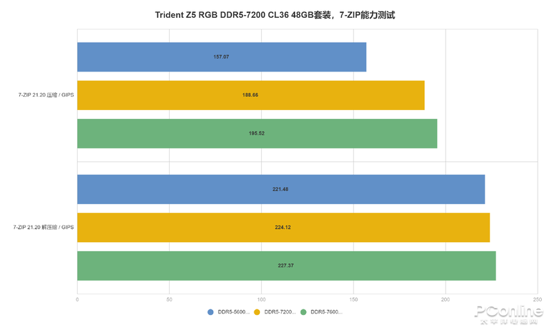 7ZIP的有着相同的性能提升表现,尤其是在压缩能力上,处理器相同,内存频率越高,性能提升越为明显。