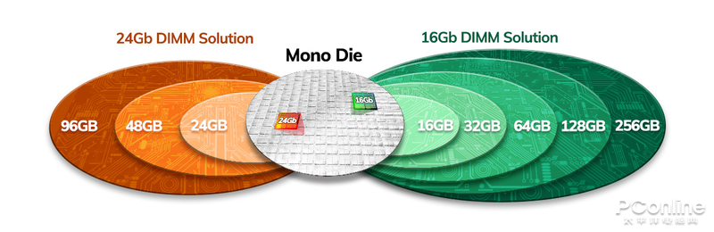 在DDR5刚发布当时,内存DRAM Mono Die(DRAM单颗粒密度)也仅为16Gb,也就是在消费级市场上为何常看到16GB单面DDR5内存条,两条双通道自然就是32GB。而随着技术的发展,SK海力士推出了Mono Die密度更高的DDR5 DRAM颗粒 — — 24Gb,就是那个最近DDR5内存A-Die/M-Die颗粒都很能超的那家SKHynix,而且所说24Gb在性能方面很是可以。