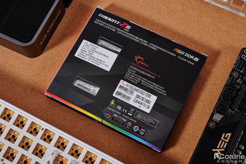 而由于是Trident Z5 RGB 幻锋戟系列产品均采用同样的设计,所以如果你看产品背面的产品标签,比较难区别清楚不同的频率、时序,以及容量版本。