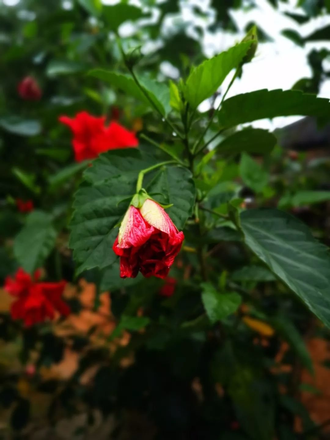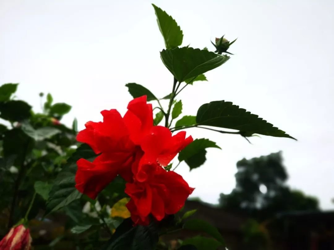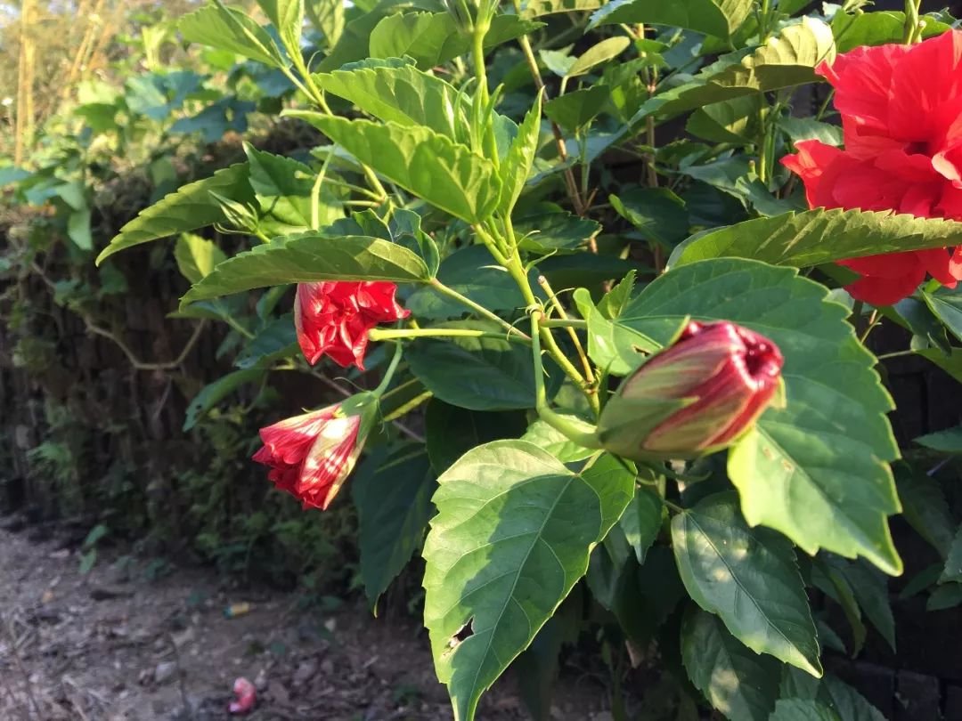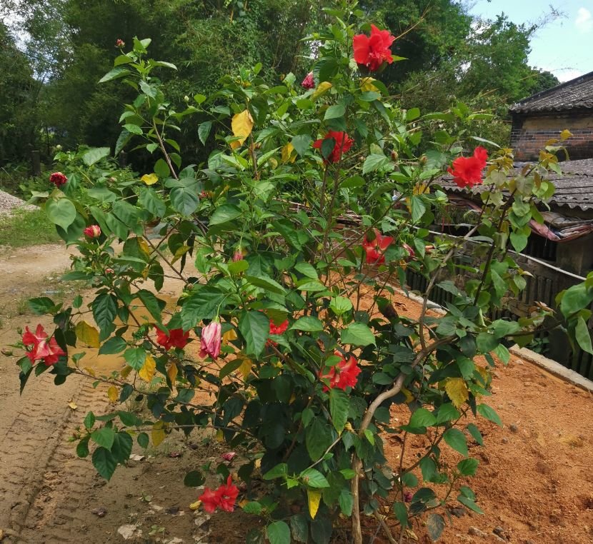 上面这棵是我种在家门口的扶桑花,满枝都开满了花朵,一年到头都有花。