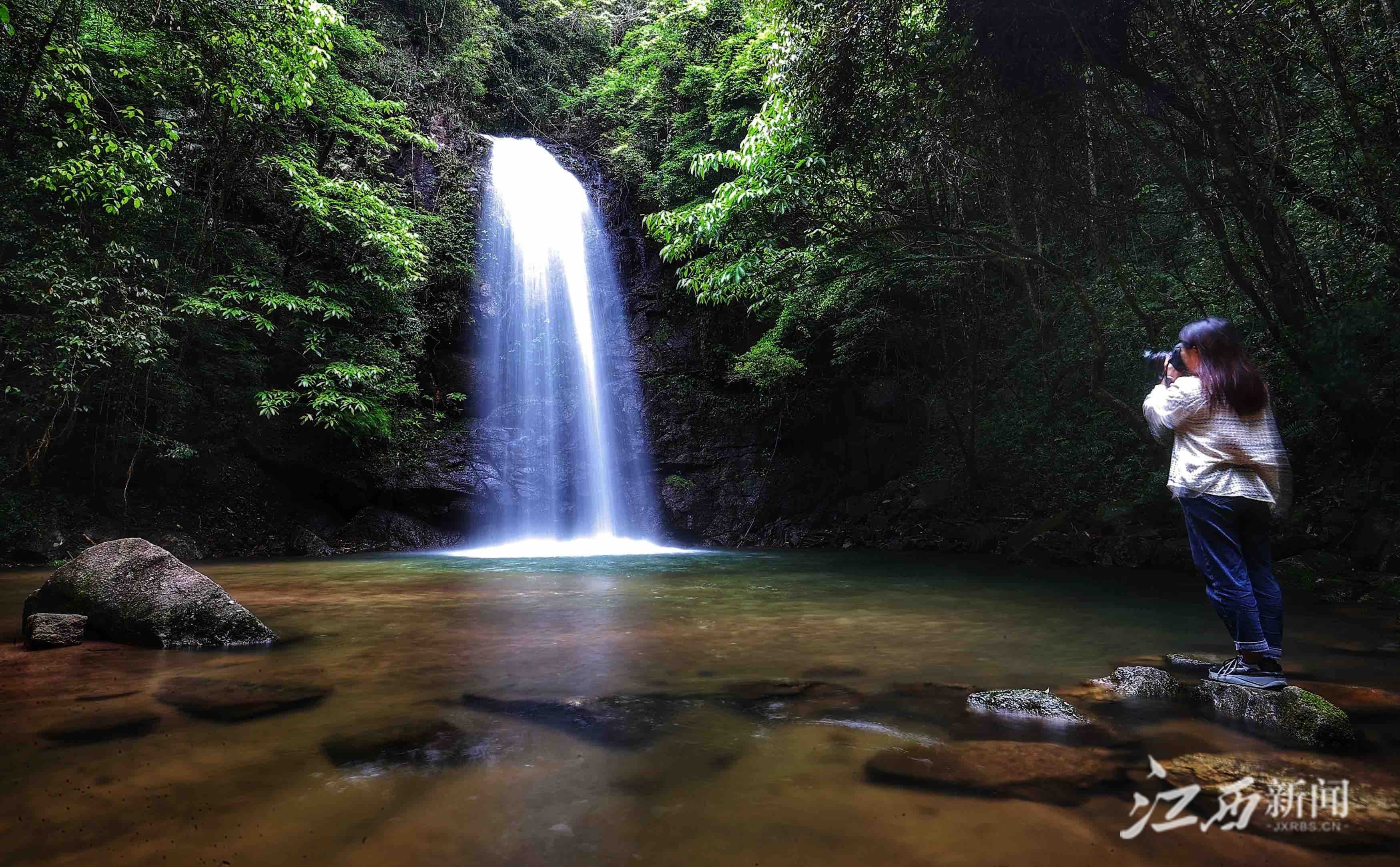 江西新闻客户端讯(江西日报全媒体记者徐铮)5月13日,信丰县金盆山林场,“藏”在深山的瀑布美景,吸引了生态志愿者和摄影爱好者前来探秘。金盆山林场森林覆盖率超过97%,孕育着丰富的动植物,生物多样性种类丰富,自然景色优美,一些罕见动植物以及自然景观有待进一步发现。