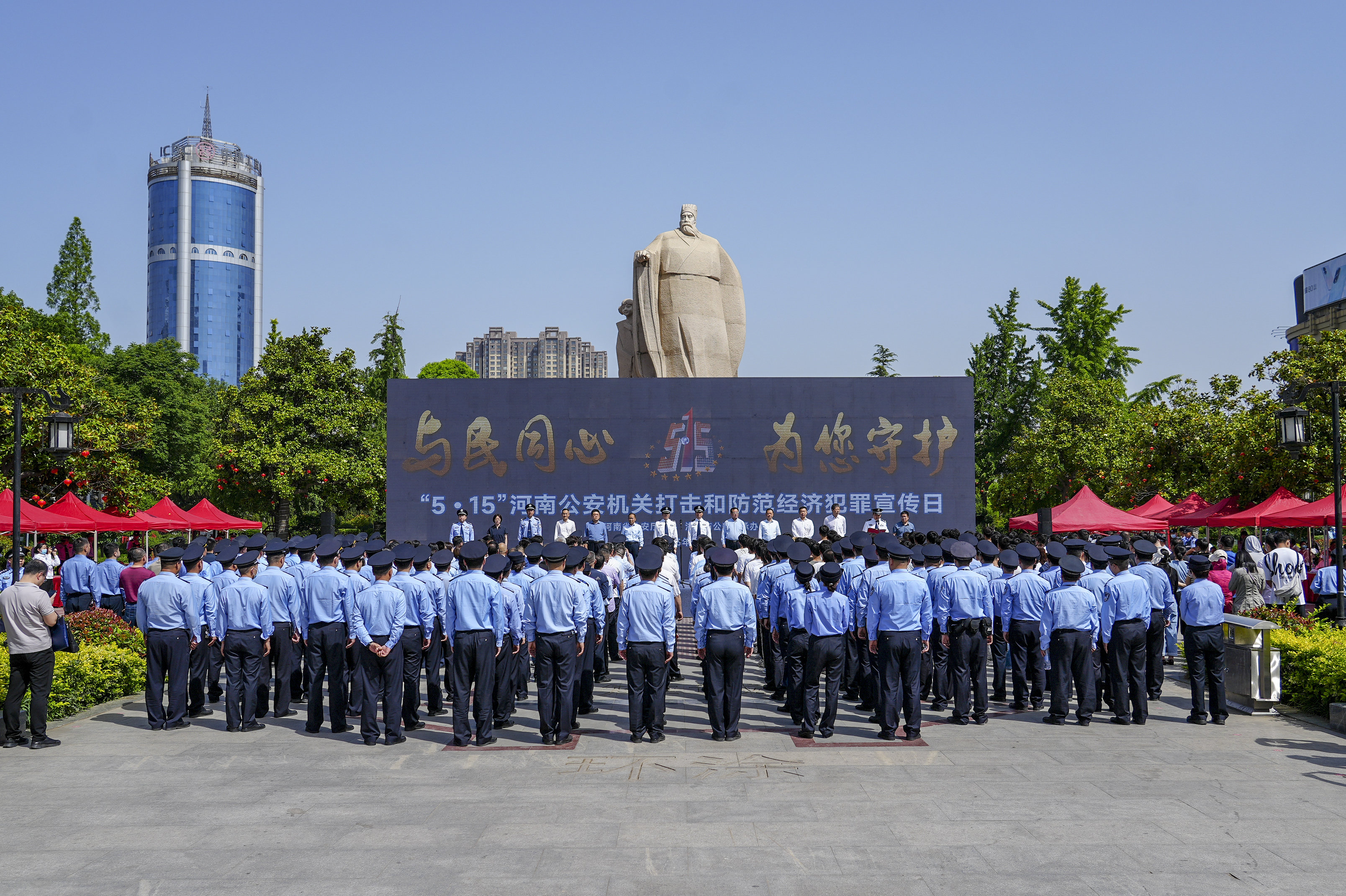 艳阳照古城,清风拂丽景。5月15日,在第十四个公安机关打击和防范经济犯罪宣传日到来之际,由河南省公安厅主办、洛阳市公安局承办的以“与民同心 为您守护”为主题的“5.15”打击和防范经济犯罪宣传日现场活动在洛阳周王城广场举办。河南省公安厅、洛阳市公安局,以及省金融、税务、烟草、银保监、证监、市场监管、人行、海关、银联等有关领导出席现场活动。