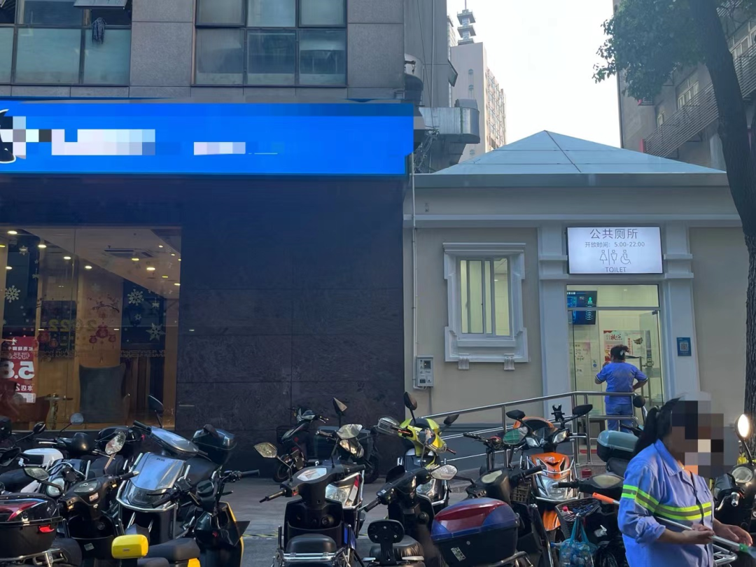 在街道的入口处还有一个像小屋一样的智慧公厕