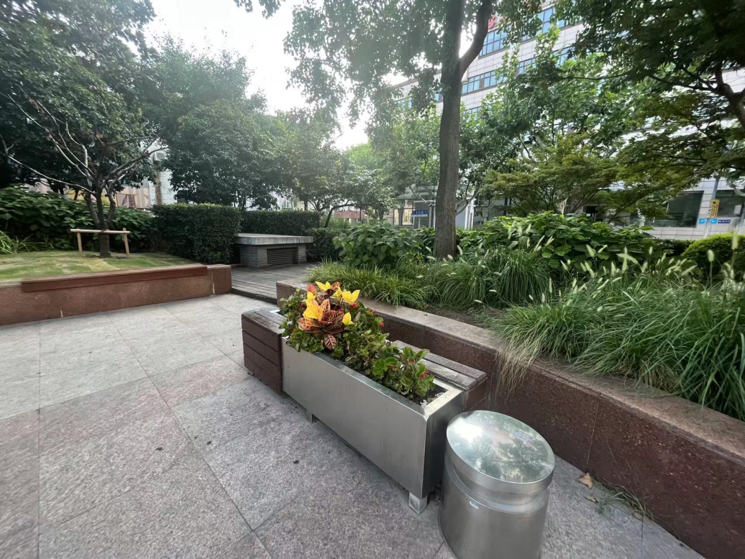 在街角空间有一个类似于小公园的地方,这些座椅就为来这里临时休息的人布置的