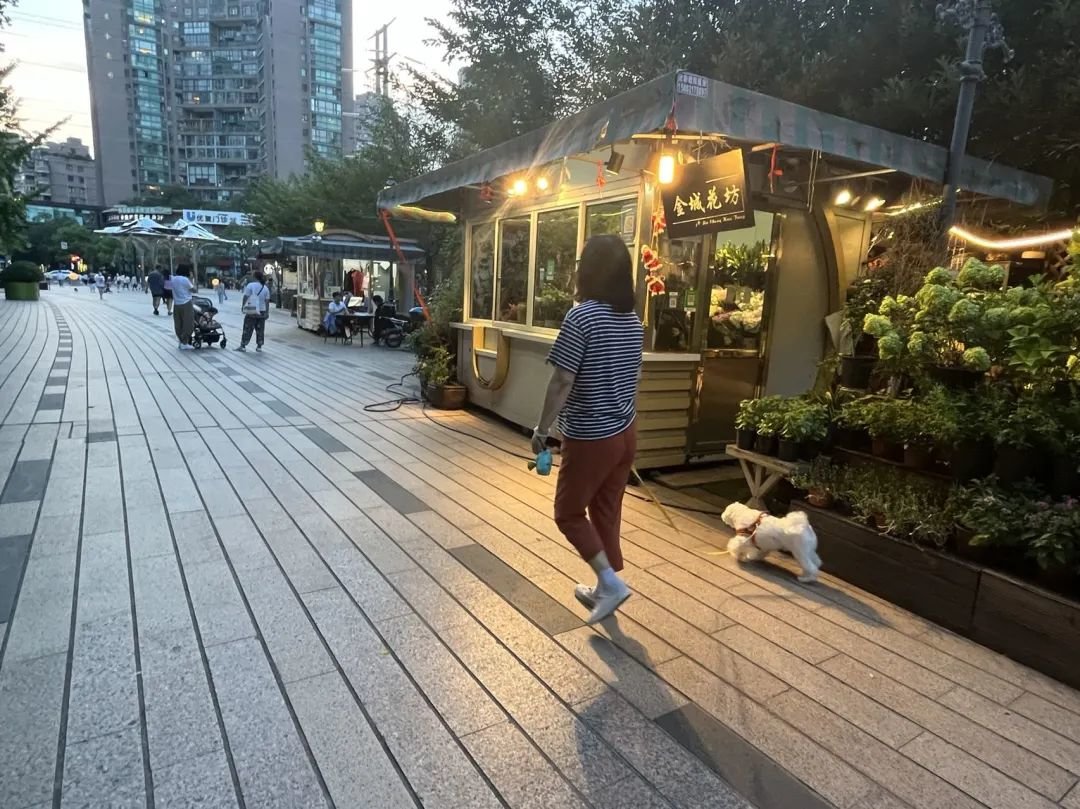 为了给这条步行街带来很好的体验,整条街道除了沿街的社区底商,中间还开着几家小店,花店、服装店、小酒馆...