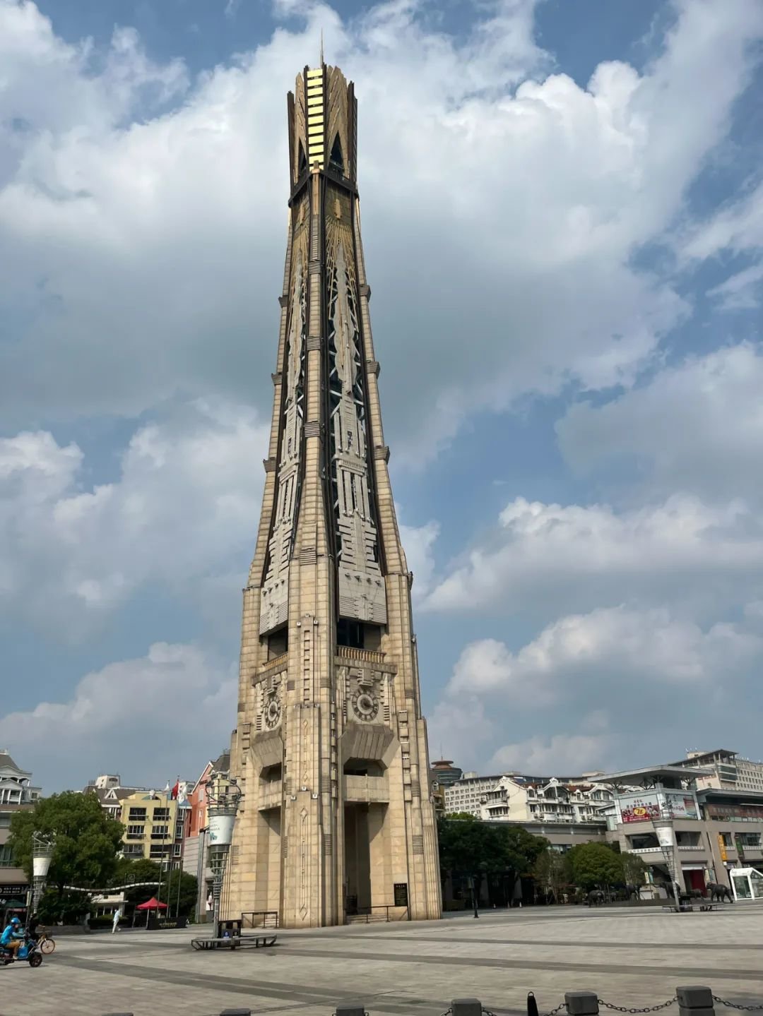 造型像一个钟塔,亮起灯的时候极其绚丽,夜晚是这样子