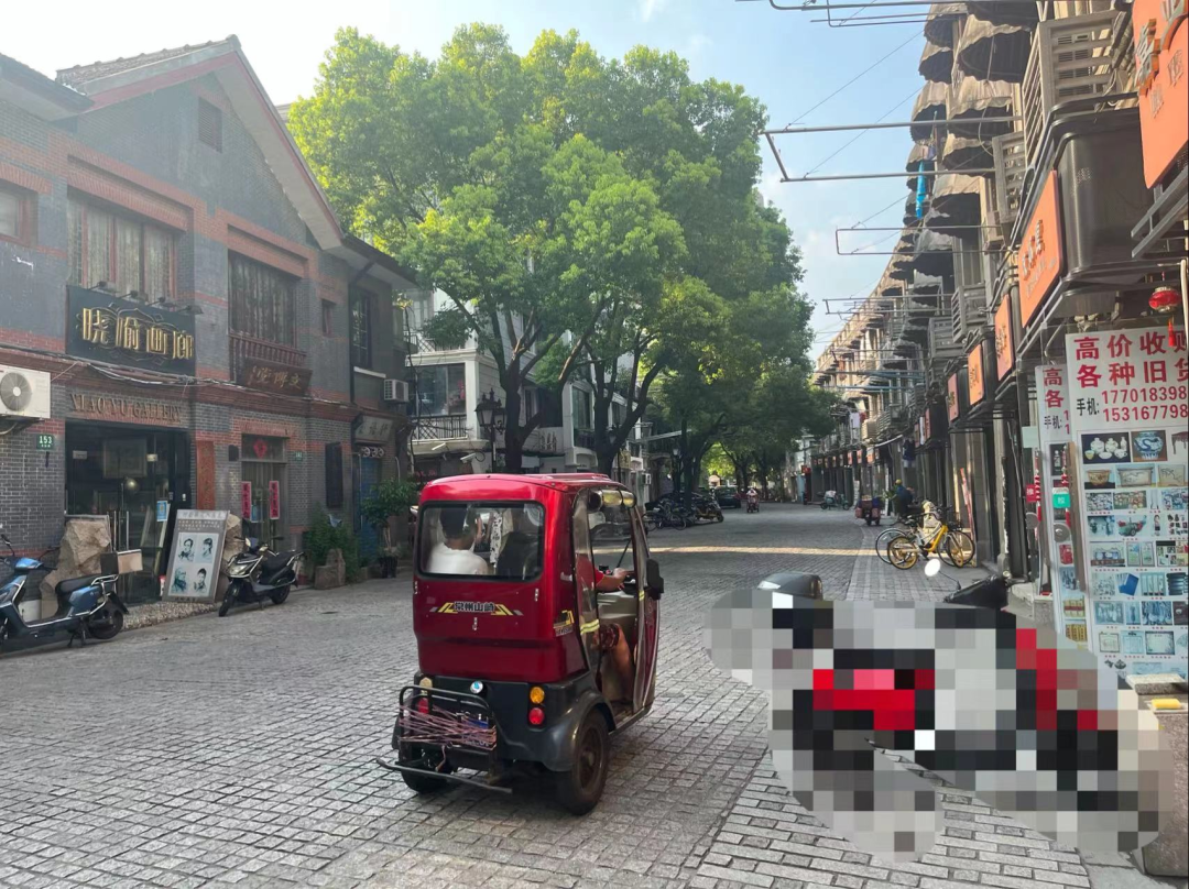 进进出出的人要么步行要么就是骑着电瓶车,和对面熙攘车辆的街景完全不同。在步行街的入口有一个很明显的黄色标识,告诉你这里不可以停车