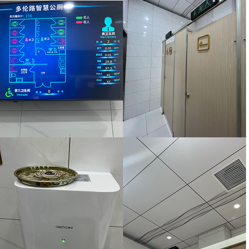 在电子屏上会显示客流量和空余卫生间情况,卫生间上方显示有人无人、一盘蚊香、到安装空调,都为你想到了