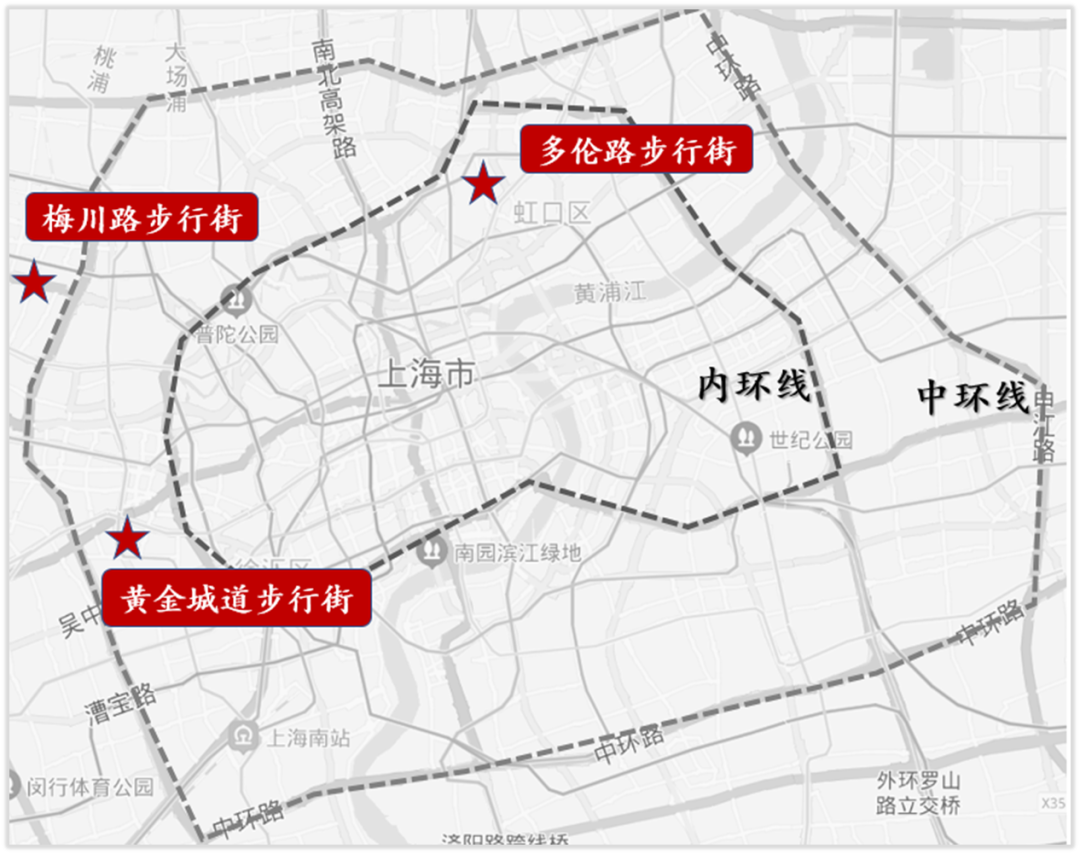 这几条不同车的街道:黄金城道、梅川路、多伦路