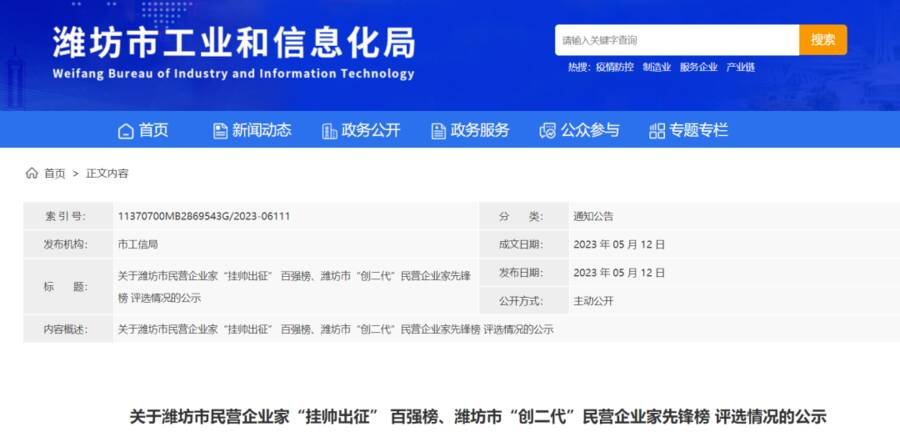 来源:潍坊工业和信息化局
