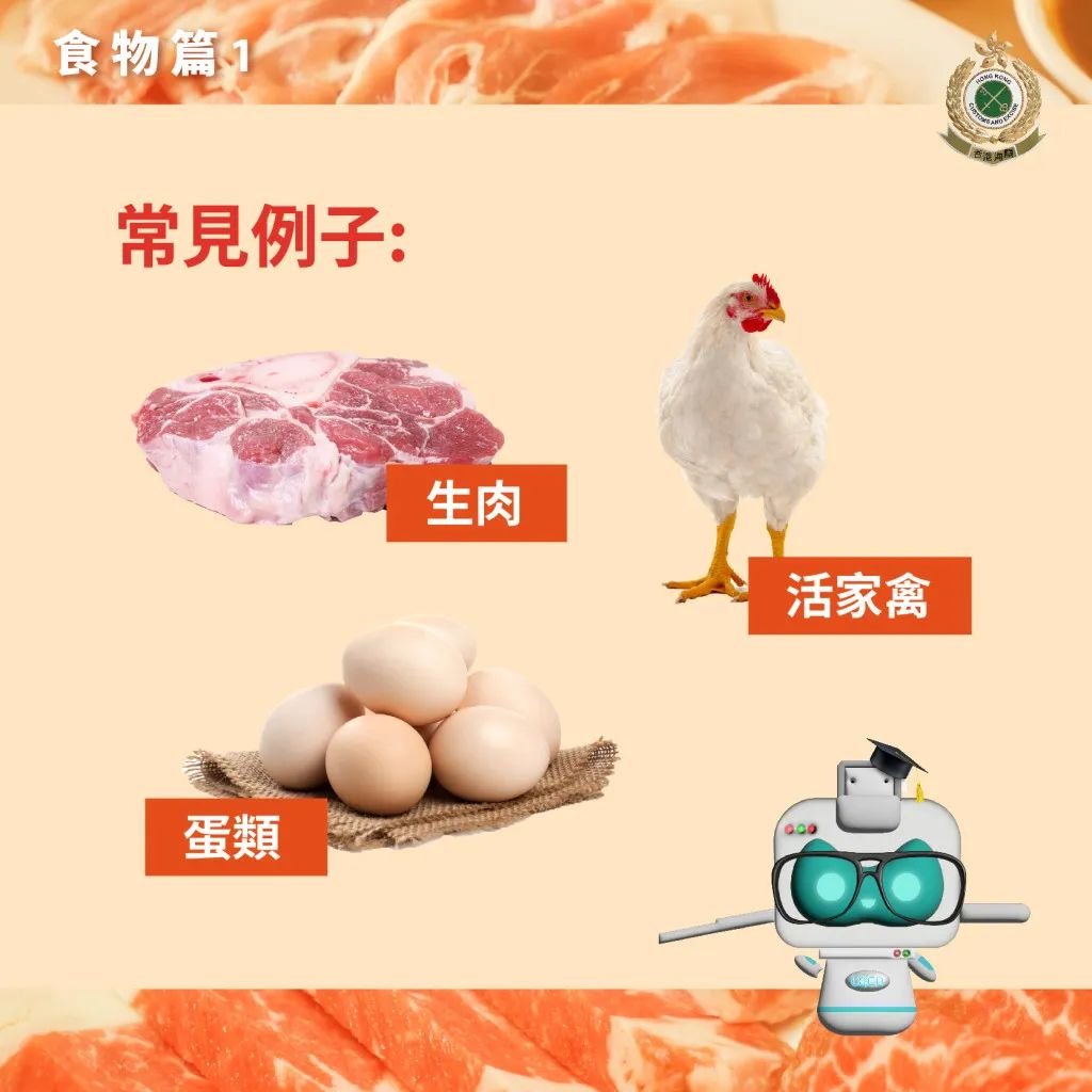 涉及到和肉类相关的(野味、肉类、家禽或蛋类)入境,必须要有原产地发证机关签发的卫生证明及/或食物环境卫生署的事先书面批准。