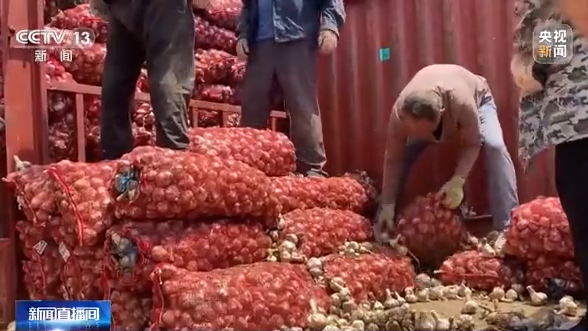 在河南郑州中牟县的大蒜生产基地,9万亩早熟大蒜已开始收获并集中上市,来自全国各地的采购商抢“鲜”收购,论价、称重、装车一片繁忙。
