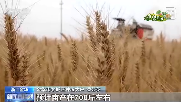 浙江省金华市婺城区种粮大户 潘芸英:今年我们这里种植了2800多亩小麦,预计亩产在700斤左右,比去年增加了100来斤。