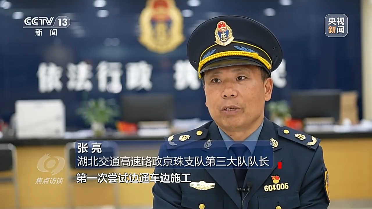 湖北交通高速路政京珠支队第三大队队长 张亮:这一次的改扩建是湖北省第一次尝试边通车边施工,包括管理经验、施工单位的压力,我们都是没有见过的。刚开工的时候,我们就说过全力以赴支持,毫无条件地选择,保质保量地完成任务。