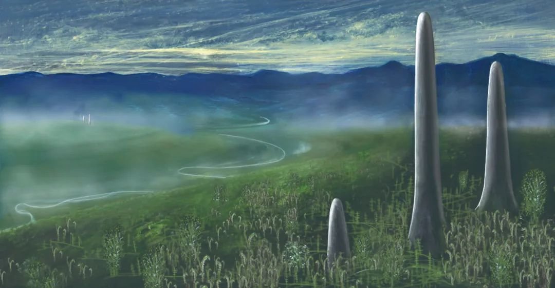 图片右侧的3根圆锥形物体是可高达8米的真菌可能的样子