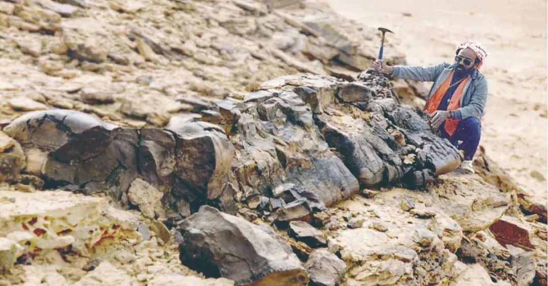 在阿拉伯地区,考古人员清理出一棵原始杉树的化石