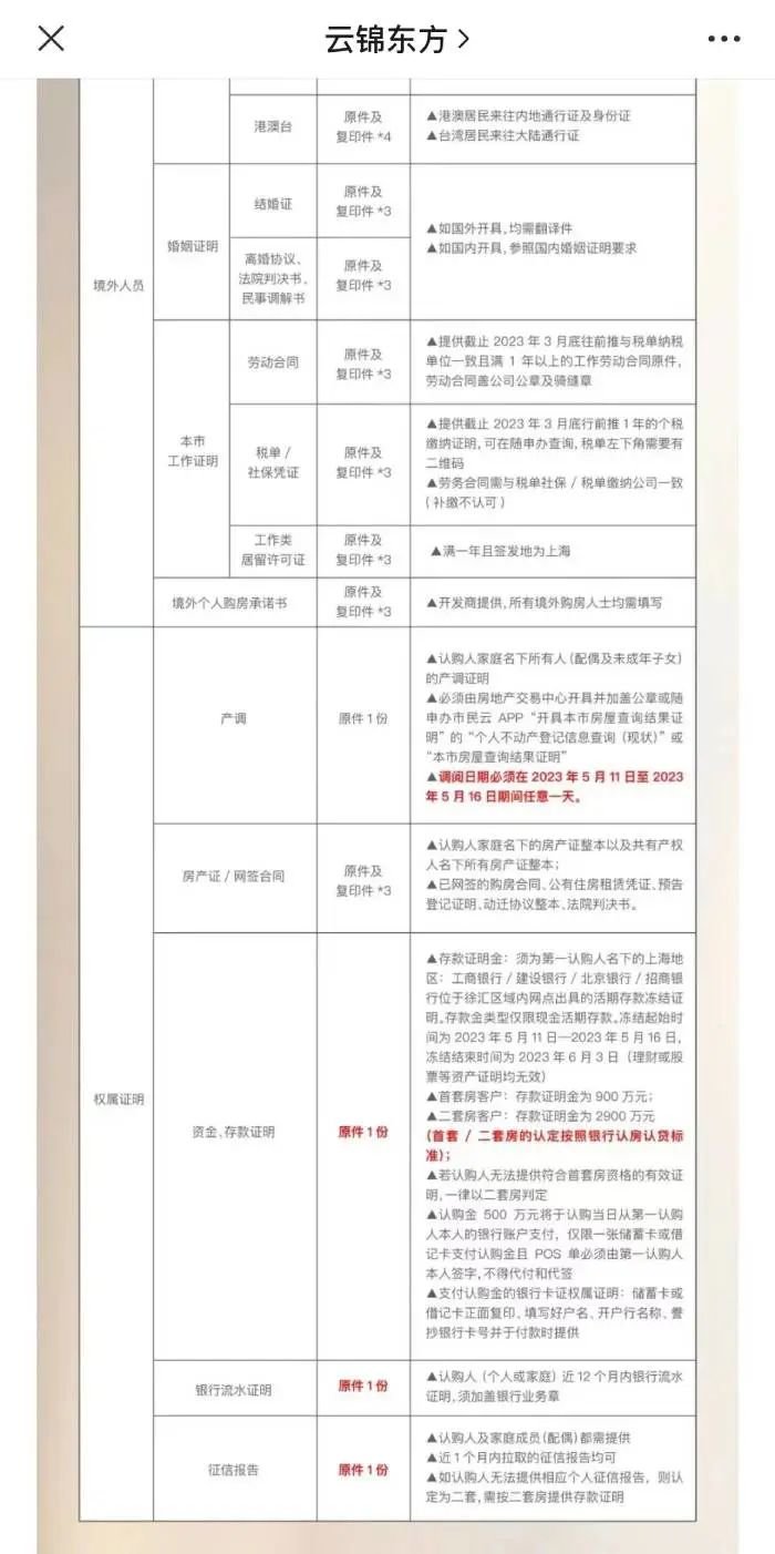 云锦东方认购所需材料明细表。图源:项目微信公号