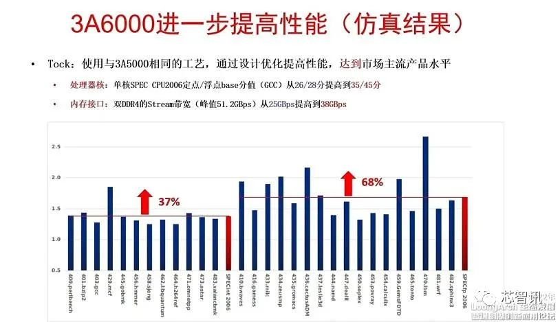 据介绍,龙芯3A6000的每GHz分值已达到17分左右,下一步是争取提高到20分。当然,龙芯也会持续提高CPU主频,但不会走目前英特尔的为频率而 牺牲效率的技术路线,争取在3GHz水平上持续降低成本和功耗。