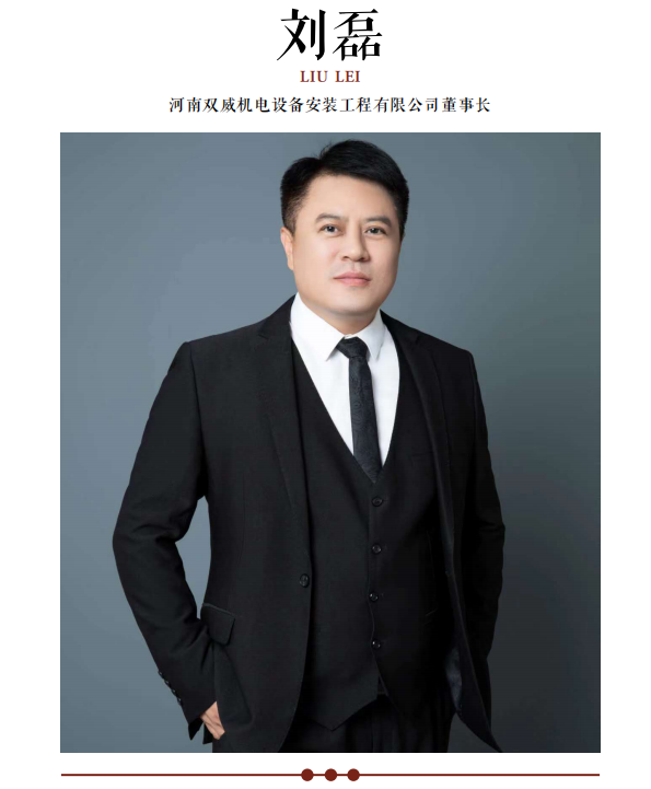 刘磊是河南省商丘市柘城县申桥乡贾庄村人,父亲是乡政府基层干部,母亲是地地道道的农民。刘磊高考考入了平顶山工学院(现在改名河南城建学院)电气自动化专业,也是本校的第一届本科生。2006年,大学毕业的刘磊有幸就职于国家级技术企业、中国煤炭协会选煤分会理事单位平顶山中选自控系统有限公司。在此期间,他从基层技术员开始做起,逐步成长为项目总工程师,主持了梅花井选煤厂智能化项目等大型项目的实施和管理,并从中积累了大量的一线工作经验,熟悉了设备结构、工作原理,学会了使用电控网络、PLC程序、变频软启,培养了设备故障的诊断与维修等方面较硬的业务能力。刘磊在平顶山中选自控系统有限公司工作了将近十年的时间,至今,每当他回忆往昔,都会感谢过去诚心教过自己的师傅和领导,以及同事之间的互助共进。2012年11月,刘磊创立了河南双威机电设备安装工程有限公司,他有效地利用了自己积累的人力资源和专业资源优势,时刻探索国际先进技术,拓展经营区域和产业链,为河南双威机电的发展奠定了坚实的基础。