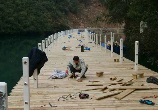 报道称,为了保证小汽车安全行驶并能达到随车产生优美水浪弧线的效果,旗华公司通过大量深入实验、对比不同性能的材料,最终选用结构强度高、柔韧性强、耐久性强的进口南方松防腐木材作为浮桥表面铺装和龙骨的基础材料。“事实证明,选择这一材料所建造的浮桥达到了预期效果。在大峡谷中的浮桥上开车、步行体验绝佳,浮桥一经推出立即火爆国内外网络平台,很多游客慕名而来。”