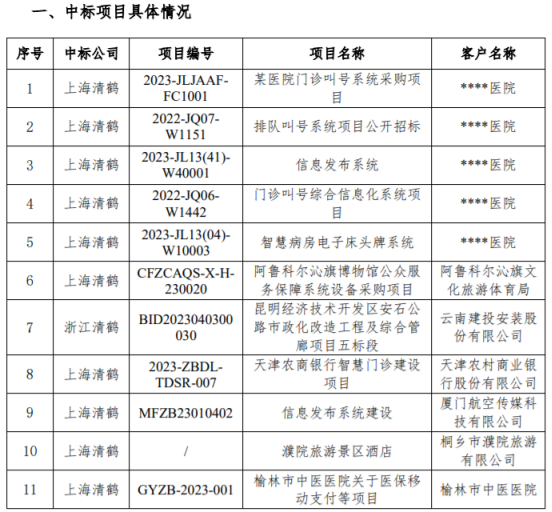 挖贝网5月17日,清鹤科技(834762)近日发布公告,上海清鹤科技股份有限公司(以下简称“公司”或“上海清鹤”)及全资子公司北京清鹤科技有限公司(以下简称“北京清鹤”)及控股子公司浙江清鹤科技有限公司(以下简称“浙江清鹤”)自2023年初至本公告发出日止,累计中标某全国知名综合性三级甲等医院等在内的16个项目,中标金额合计约为人民币2,543.29万元。