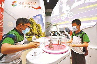 近日,中国科技馆历时3年自主设计、精心打造的“共话健康真意”常设展厅全新亮相。展览聚焦公众关心的健康话题,向公众讲述健康新理念。展览共设置8个话题、43件互动体验展品。图为昨日学生在展厅体验互动项目。
