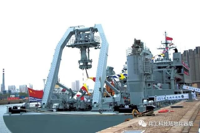 洪泽湖援潜救援舰尾部视图,可以看到巨大的门式吊机