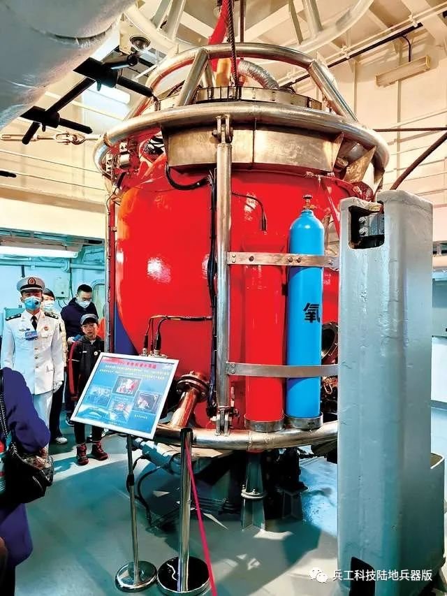 对洪泽湖舰参观一圈下来,感觉众多的潜水器具大都为橙黄色和橙红色,与介绍人员沟通得知,主要还是为了在海面上和水下醒目利于辨别,还具有一定的防鲨功能,可以避免大型海洋生物的攻击。