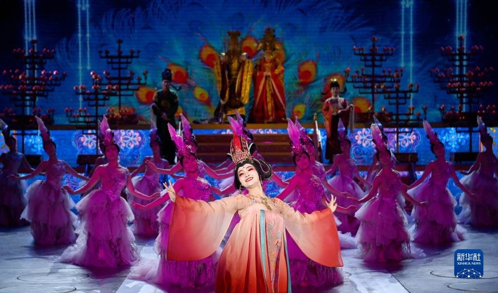 西安大唐芙蓉园内上演的歌舞剧《梦回大唐》(1月24日摄)。