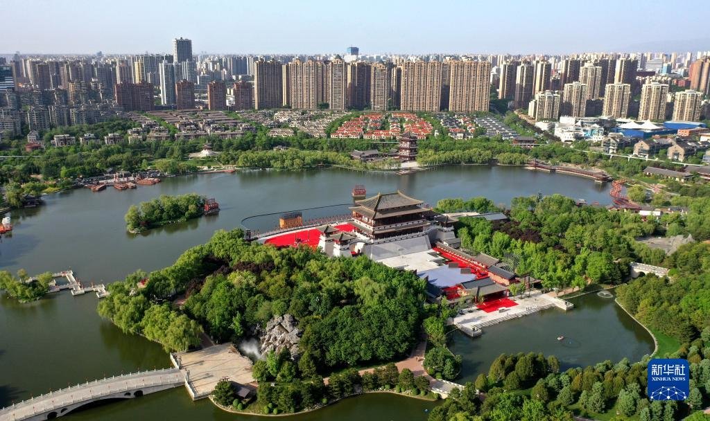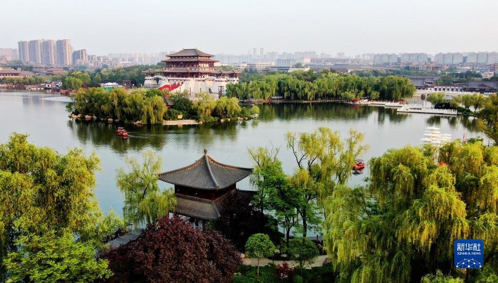 西安大唐芙蓉园(4月19日摄,无人机照片)。