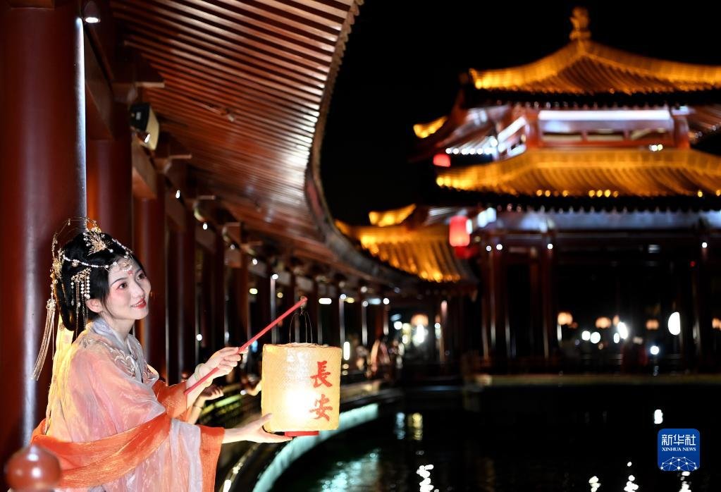 位于陕西西安城南的大唐芙蓉园,是在唐代芙蓉园遗址以北、仿照唐代皇家园林式样重建的一座全方位展示盛唐风貌的大型文化主题遗址公园。园内紫云楼馆桥飞渡,彩霞亭烟波浮动,望春阁亭亭玉立……漫步其间,随处可见身着古装的游客携亲友同行,在流动的光影之间,恍若穿越千年。水舞灯光秀《大唐追梦》、歌舞剧《梦回大唐》、宫廷燕乐《鼓》等创新演艺也让唐风国韵在此散发经久不衰的艺术魅力。