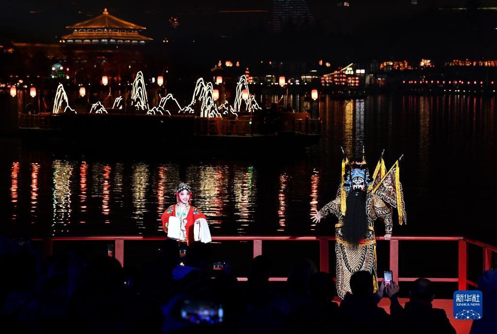 西安大唐芙蓉园内上演的秦腔表演(2月5日摄)。