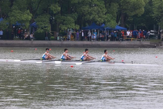 “同在一个艇,心往一处想,劲往一处使” 运动员们整齐划一地划动船桨,碧水中轻盈的舟艇如离弦之箭划过航道。当赛艇撞线时的汽笛声响起,看台上爆发出观众的欢呼,这是运动爱好者的户外狂欢,也是城市活力的体现。