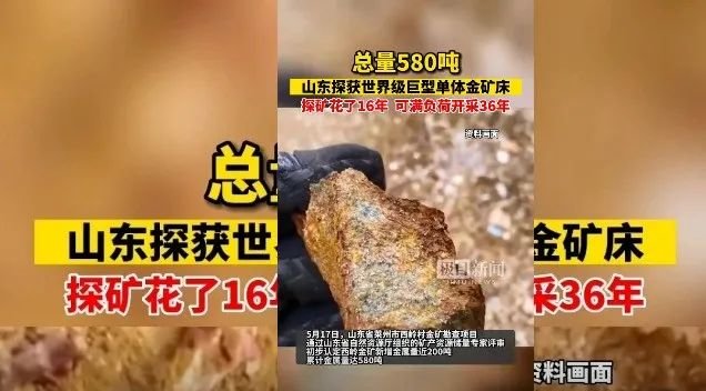 据闪电新闻5月18日报道,5月17日,莱州市西岭村金矿勘查项目通过省自然资源厅组织的储量专家评审,初步认定西岭金矿新增金金属量近200吨,累计金金属量达580吨,潜在经济价值2000多亿元。